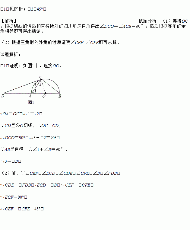 如图(1),AB为半圆O的直径,D为BA的延长线上一点,DC为半圆O的切线,切点为C.