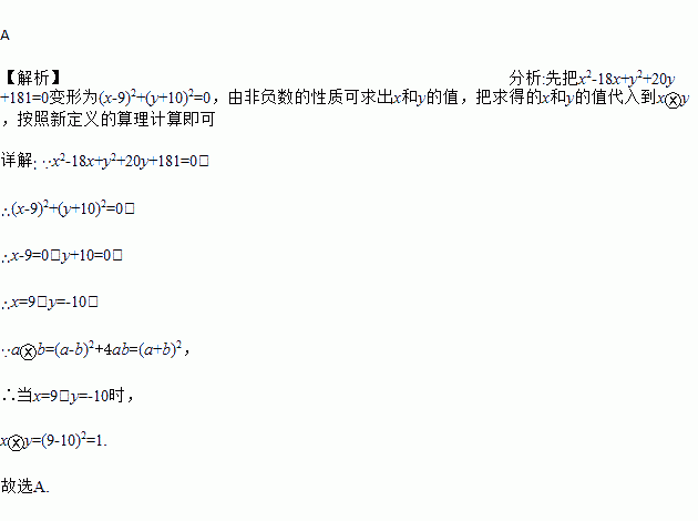 定义:对于任意有理数a,b,都满足a?b=(a-b)2+4ab,若x2-18x+y2+20y+181=0,则x?y=( )