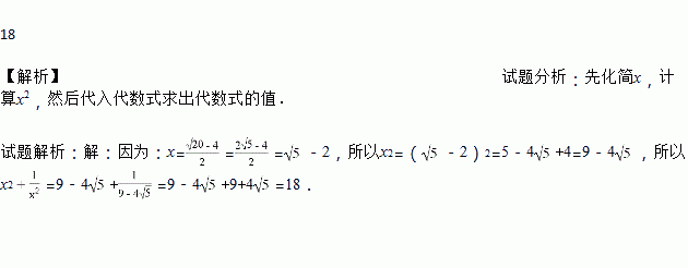 已知:x=,求x2+的值.