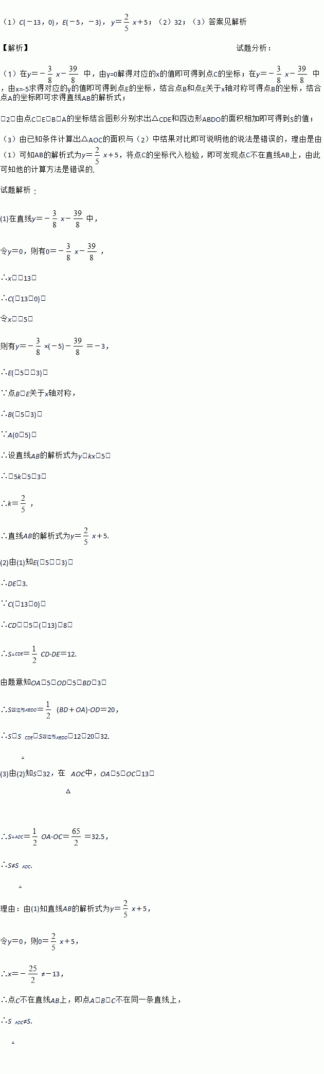 (3)在求(2)中S时,嘉琪有个想法:“将△CDE沿x轴翻折到△CDB的位置,而△CDB与四边形ABDO拼接后可看成△AOC,这样求S便转化为直接求△AOC的面积,如此不更快捷吗?”但大家经反复验算,发现S△AOC≠S,请通过计算解释他的想法错在哪里.
