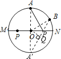 解:作点A关于MN的对称点A′,连接A′B,交MN于点P,连接OA′,AA′.