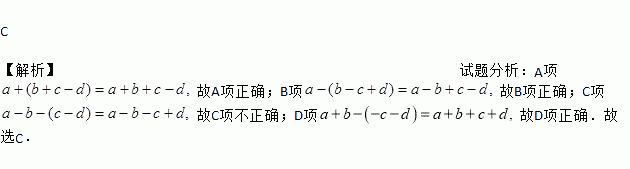 C. a﹣b﹣(c﹣d)=a﹣b﹣c﹣d D. a+b﹣(﹣c﹣d)=a+b+c+d