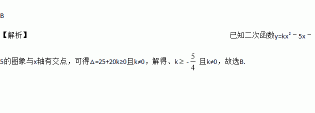 已知二次函数y=kx2﹣5x﹣5的图象与x轴有交点,则k的取值范围是( )
