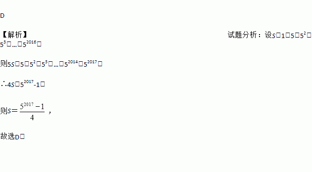 为了求1+2+22+23+…+22016的值,可令S=1+2+22+23+…+22016,则2S=2+22+23+24+…+22017,因此2S-S=22017-1,所以1+2+22+23+…+22016=22017-1. 仿照以上推理计算出1+5+52+53+…+52016的值是( )