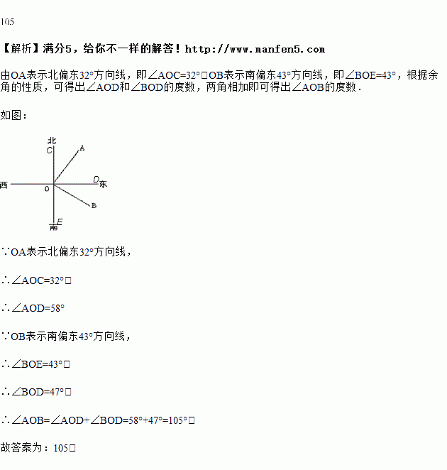 如图,表示北偏东方向线,表示南偏东方向线,________度.