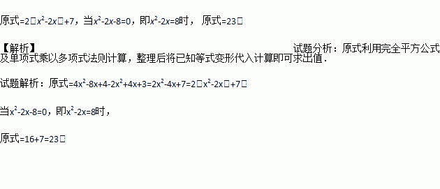 已知x2-2x-8=0,求4(x-1)2-2x(x-2)+3的值.