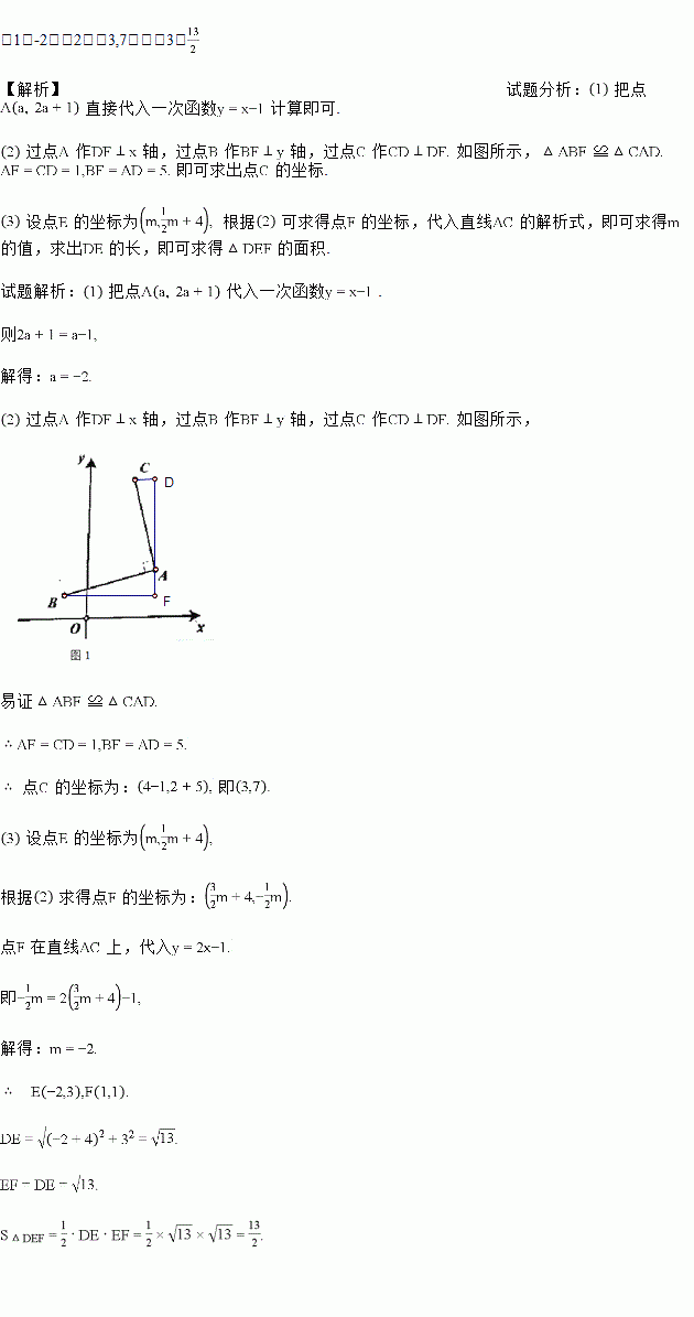 、直线AC:y=2x-1)围成的三角形区域内计划修建一个三角形的特色旅游小镇.如图,D(-4,0),△DEF的顶点E、F分别在线段AB、AC上,且∠DEF=90°,DE=EF,试求出该旅游小镇(△DEF)的面积.