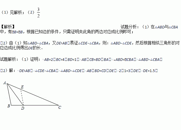 (2)在原图上作DE∥AB交AC与点E,请直接写出另一个与△ABD相似的三角形,并求出DE的长.
