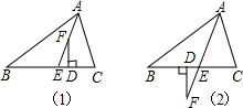 如图(1),在△ABC中,AE平分∠BAC(∠C>∠B),F为AE上一点,且FD⊥BC于D.