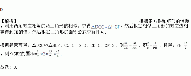 如图为两正方形ABCD、BEFG和矩形DGHI的位置图,其中G、F两点分别在BC、EH上.若AB=5,BG=3,则△GFH的面积为( )