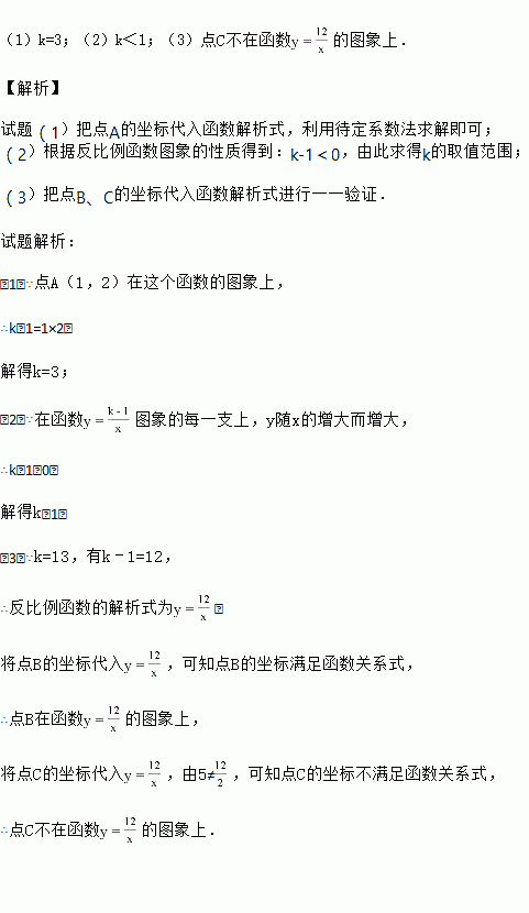 (3)若k=13,试判断点B(3,4),C(2,5)是否在这个函数的图象上,并说明理由.