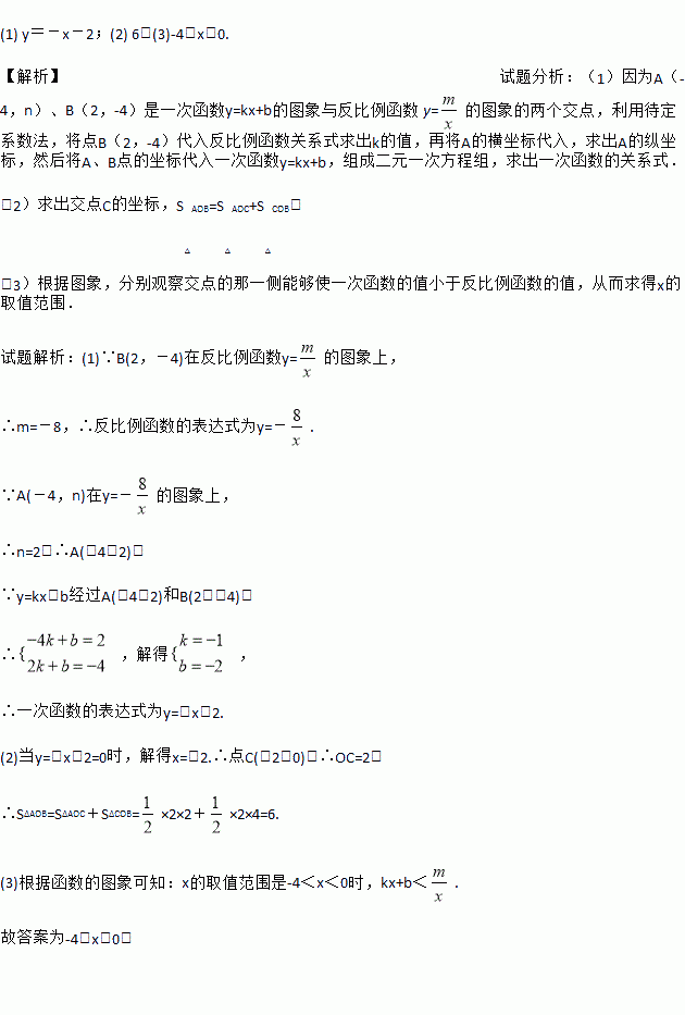 如图,已知A(-4,n),B(2,-4)是一次函数y=kx+b的图象和反比例函数y=