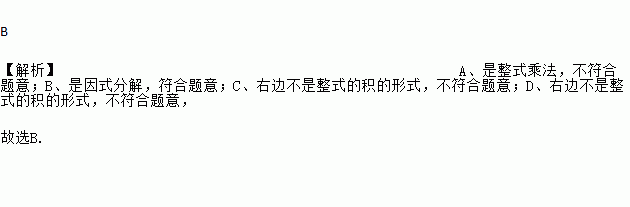下列各式从左到右的变形中,是分解因式的是( )
