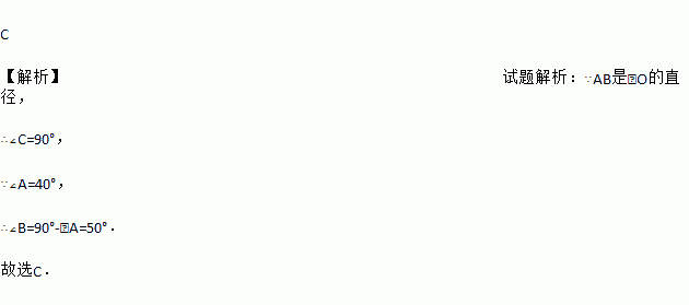 如图,AB是⊙O的直径,点C在⊙O上,若∠A=40°,则∠B的度数为( )
