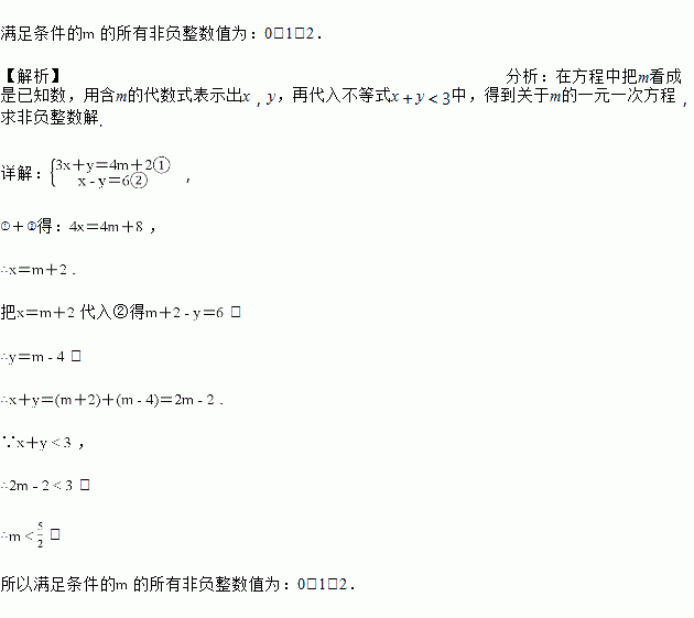 已知关于,的二元一次方程组的解满足,求满足条件的的所有非负整数值.