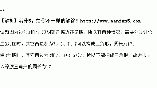 等腰三角形的两边长分别是3和7,则其周长为 .
