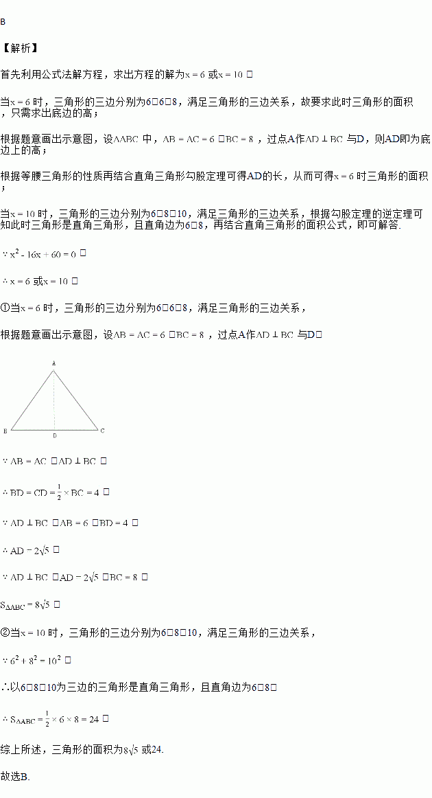 三角形两边的长分别是8和6,第三边的长是一元二次方程x2﹣16x+60=0的一个实数根,则该三角形的面积是( )