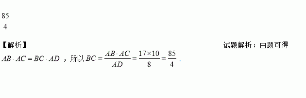 如图,在Rt中, , 边上的高=8,则边的长为__________.