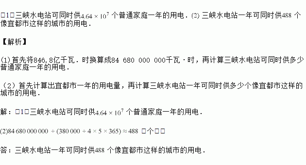 千瓦.时,三峡水电站可同时供多少普通家庭一年的用电?(保留![]()