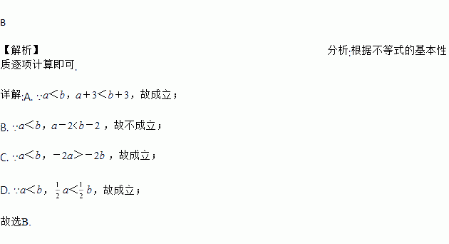 A. a+3<b+3 B. a-2>b-2 C. -2a>-2b D. a<b