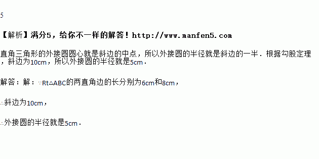 已知直角三角形的两条直角边长分别为6 cm和8 cm,则这个直角三角形的外接圆的半径为________cm.