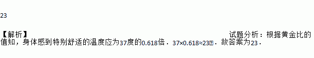 23 【解析】试题分析:根据黄金比的值知,身体感到特别舒适的温度应为37度的0.618倍.37×0.618≈23℃.故答案为23.