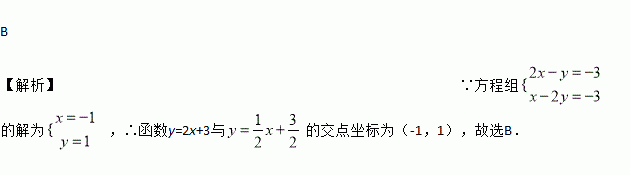 B 【解析】∵方程组的解为,∴函数y=2x+3与的交点坐标为(-1,1),故选B.