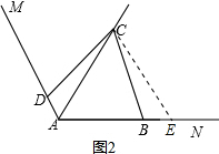 理由如下:如图2,在AN上截取AE=AC,连接CE,