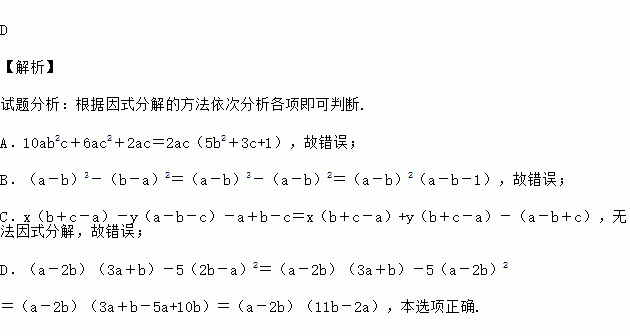 D.(a-2b)(3a+b)-5(2b-a)2=(a-2b)(11b-2a)