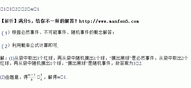 (2)先从袋中取出m个红球,再放入m个一样的黑球并摇匀,随机摸出1个球是黑球的概率是
