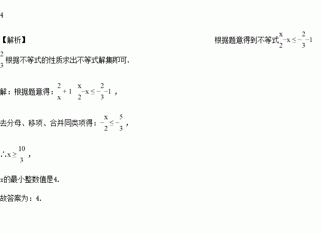 若式子的值不大于x-的值,则x的最小整数值为________________。