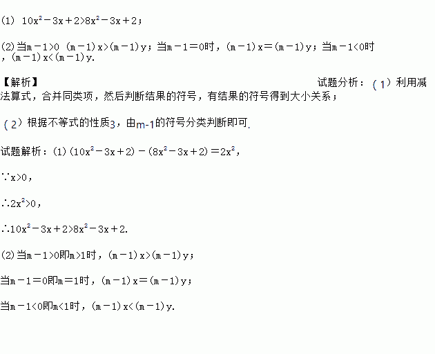 (2)已知x>y,试比较(m-1)x与(m-1)y的大小.