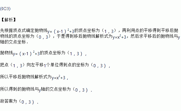 将抛物线y=(x-1)2+3向左平移1个单位,得到的抛物线与y轴的交点的坐标是____.