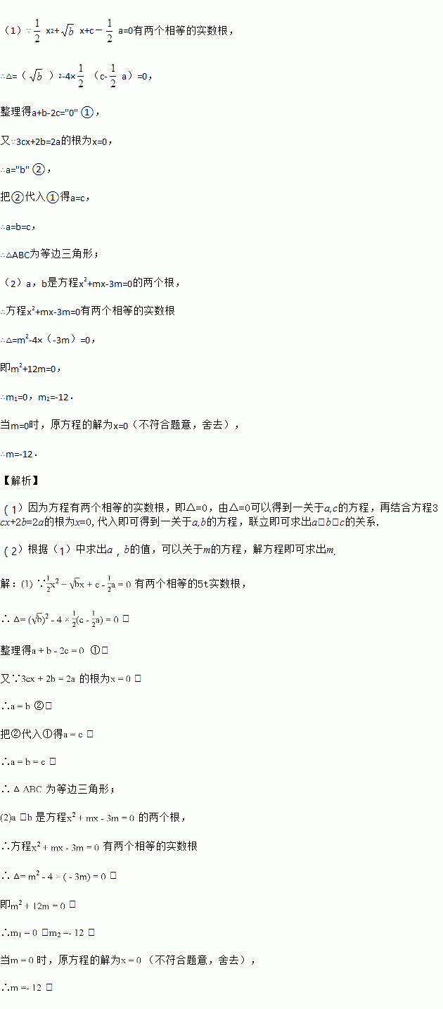 a=0有两个相等的实数根,方程3cx+2b=2a的根为x=0.