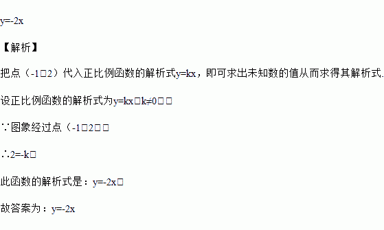 已知,正比例函数经过点(-1,2),该函数解析式为________________.