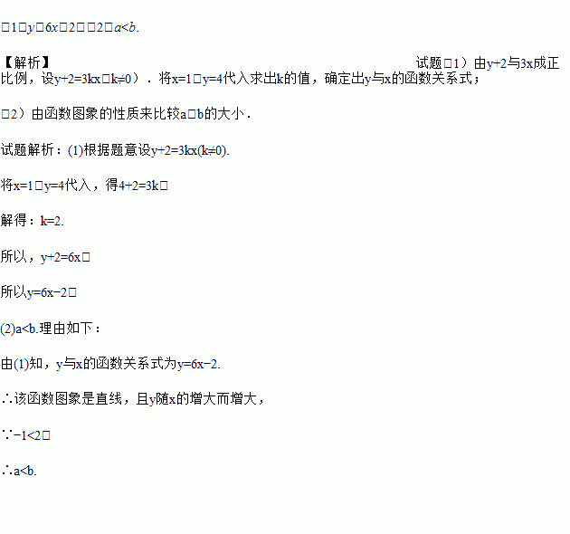 (2)若点(-1,a),(2,b)是该函数图象上的两点,请利用一次函数的性质比较a,b的大小.