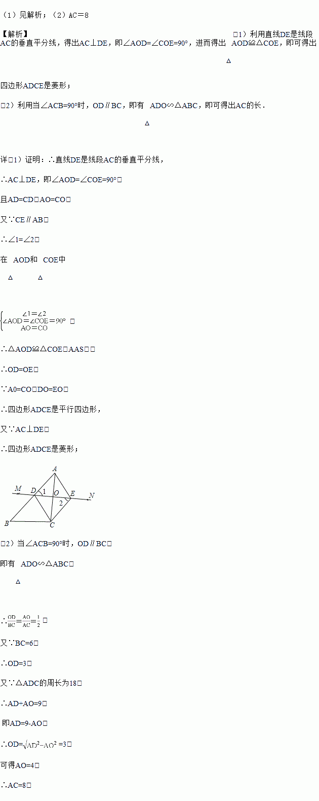 ⑵如图2,当∠ACB=90°,BC=6,△ADC的周长为18时,求AC的长度.