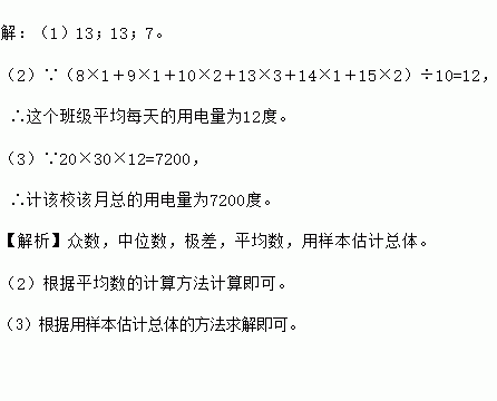 (2)求这个班级平均每天的用电量;