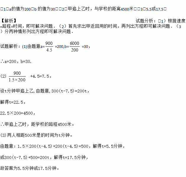 周末,甲、乙两名大学生骑自行车去距学校6000米的净月潭公园.两人同时从学校出发,以a米/分的速度匀速行驶.出发4.5分钟时,甲同学发现忘记带学生证,以1.5a米/分的速度按原路返回学校,取完学生证(在学校取学生证所用时间忽略不计),继续以返回时的速度追赶乙.甲追上乙后,两人以相同的速度前往净月潭.乙骑自行车的速度始终不变.设甲、乙两名大学生距学校的路程为s(米),乙同学行驶的时间为t(分),s与t之间的函数图象如图所示.