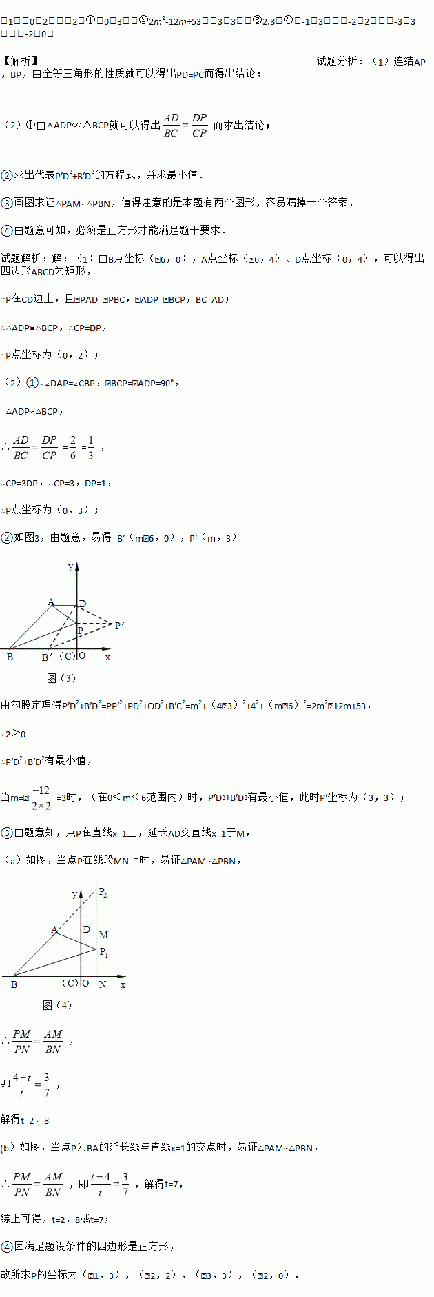 (1)如图2,若A、D两点的坐标分别为A(﹣6,4)、D(0,4),点P在DC边上,且点P为四边形ABCD关于A、B的等角点,则点P的坐标为 _________ ;