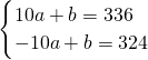 分析:将(10,336)、(-10,324)代入函数关系式,可得出二元一次方程组,解出即可得出答案.