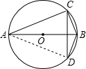 分析:连接AD,由圆周角定理得出∠ACB=90°,由勾股定理可求出AB的长,由垂径定理可知