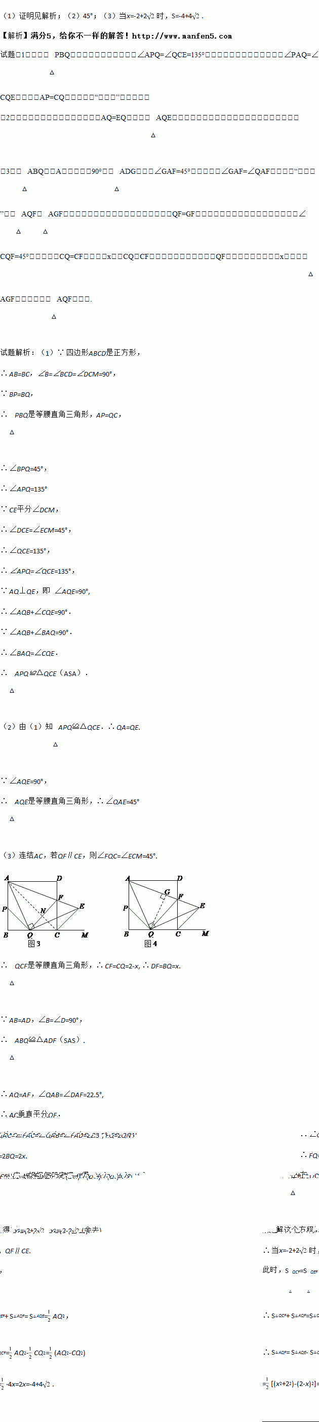 (3)设BQ=x,当x为何值时,QF∥CE,并求出此时△AQF的面积.