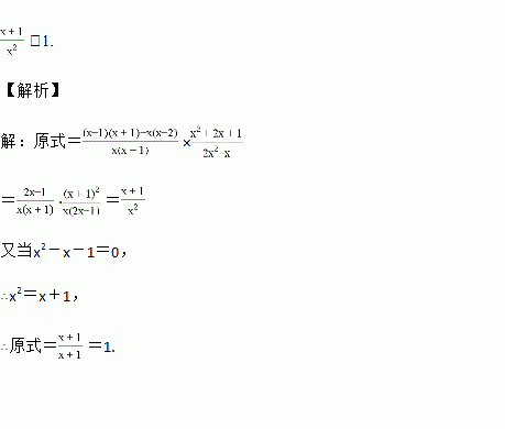 先化简,再求值:,其中x满足x2﹣x﹣1=0.