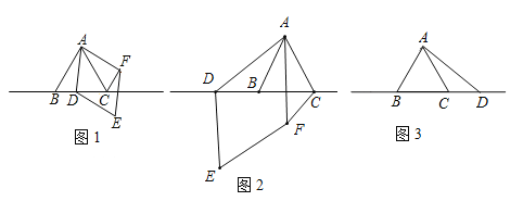 △ABC中,∠BAC=60°,AB=AC,点D为直线BC上一动点(点D不与B,C重合),以AD为边在AD右侧作菱形ADEF,使∠DAF=60°,连接CF.