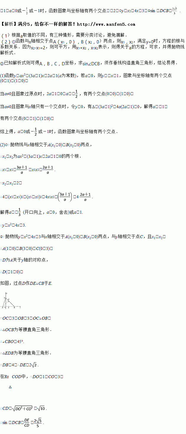 (1)若该函数图象与坐标轴只有两个交点,求a的值;