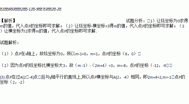 (3)点P在过点A(2,-4)且与y轴平行的直线上.