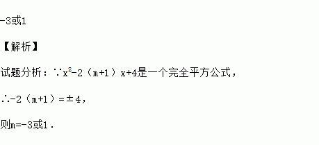 如果x2-2(m+1)x+4是一个完全平方公式,则m= .