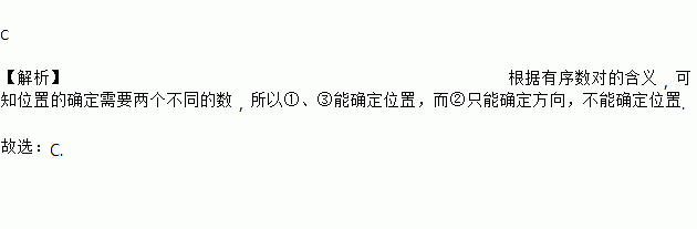 下列几种说法:①北纬30°,东经115°;②海口的南面;③第1排第4列.其中能确定位置的有( )