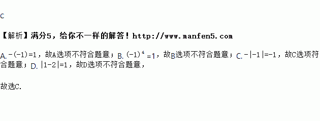 A. ﹣(﹣1) B. (﹣1)4 C. ﹣|﹣1| D. |1﹣2|